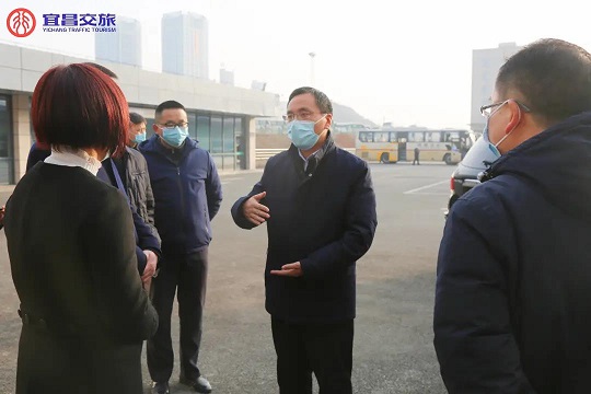 在宜昌汽车客运中心站,殷俊详细询问了车站在春运期间疫情防控、安全管控及运力调配等方面的保障措施,对进站口旅客扫码登记、“三品”安全检查、车辆消杀及车载安全设施配备、车辆4G动态监控主动预警系统运行等情况进行了现场检查与督导。