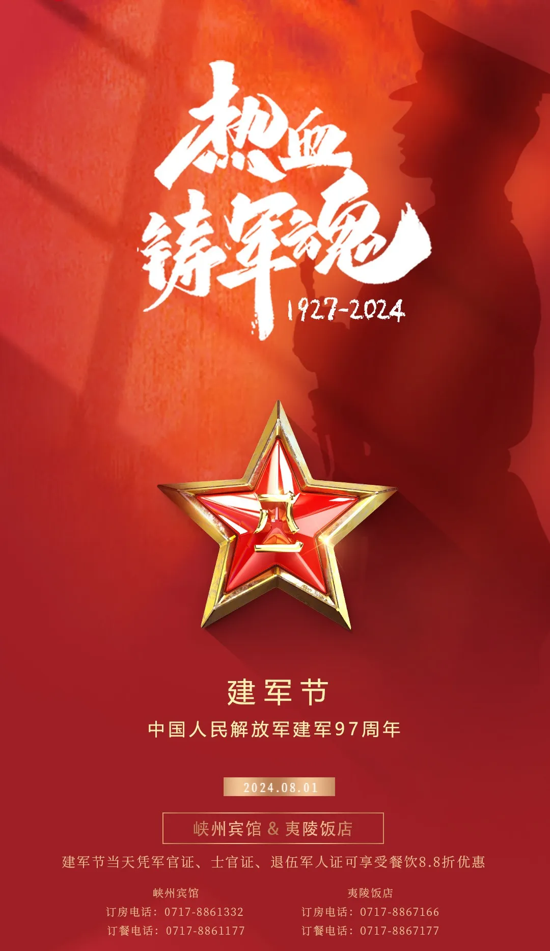 8月1日当天凭军官证、士官证、退伍军人证可享受餐饮8.8折优惠。