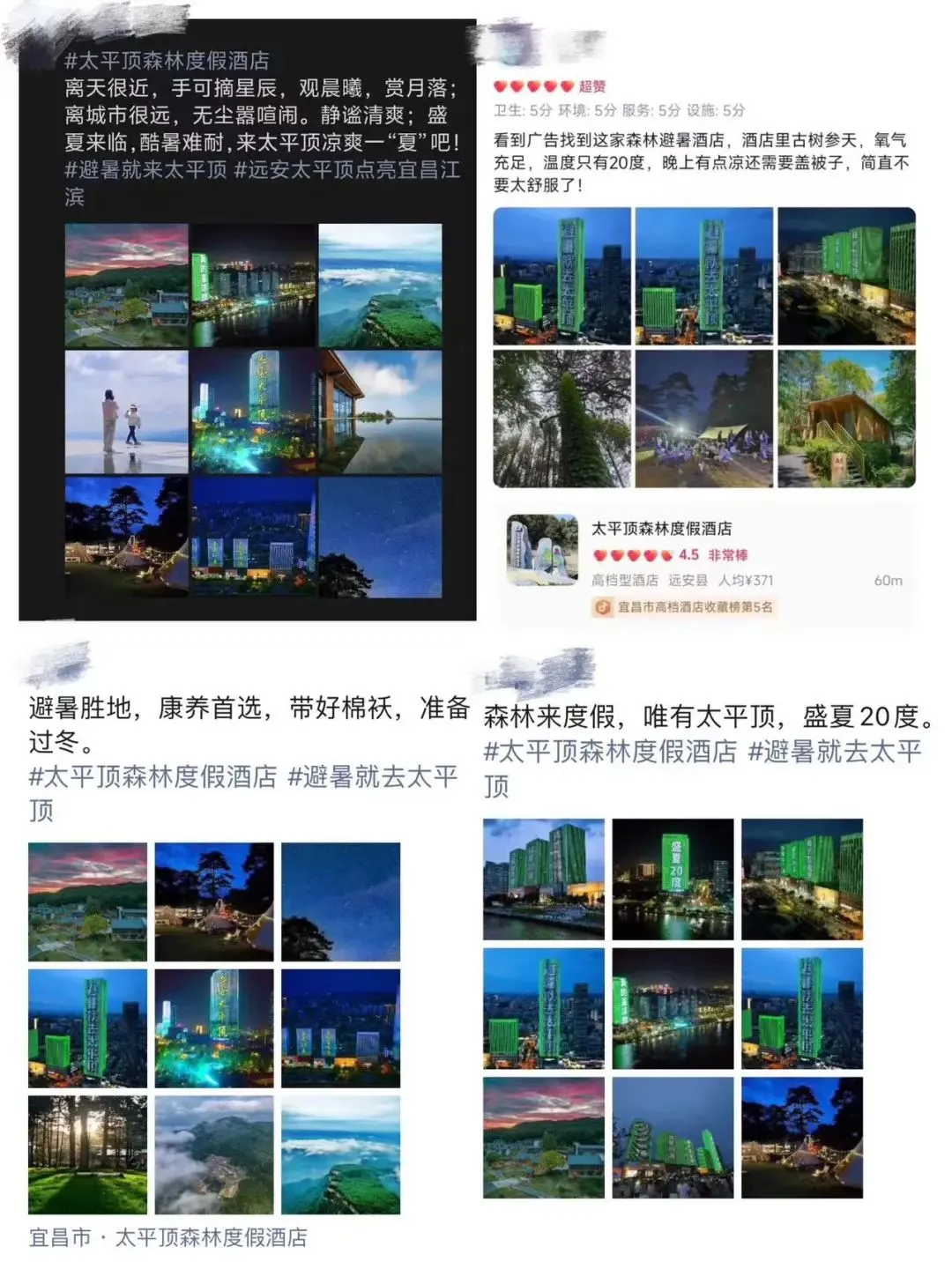 线上线下联动。结合楼宇亮灯,策划《“伏”来了!全城寻找避暑地》《亮灯打call!避暑就去太平顶》《宝子们,一起点亮属于我们的心动夏夜》等多条推文,在朋友圈“吆喝”出圈,形成合力。在此基础上,远安太平顶森林度假酒店结合楼宇广告投放,在万达、环球港等繁华地段投放户外大屏广告,在高档住宿小区投放电梯避暑广告,在武汉、襄阳、宜昌等地投放达人宣传视频,同步开展客户拜访、同业合作等工作,放大营销宣传后续效应。车溪景区迅速摄制#梦回车溪点亮宜昌滨江短视频,在抖音、微博、视频号集中发布,获得30万+曝光量,同时围绕“夏日心动”主题,推出“夏日心动”特惠票、夜游亲子、家庭票等相关价格政策,让游客既心动又得实惠。