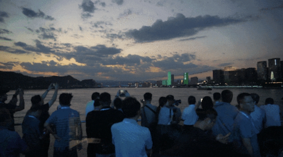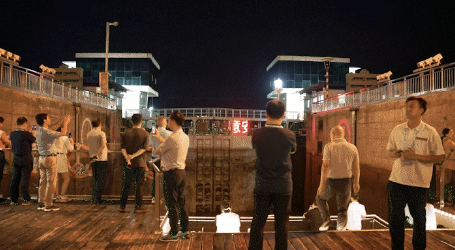 船行至葛洲坝船闸,嘉宾们最期盼的“水涨船高”体验即将到来。与会嘉宾纷纷涌向甲板,举起手机静候这彰显我国水利事业伟大发展和宜昌能级跨越的一幕。当江水渐渐托高船体,视野随之豁然开朗的时候,“山平水阔大城浮”的画面徐徐展开,嘉宾们忍不住感叹:“经此一门,心甲天下”。