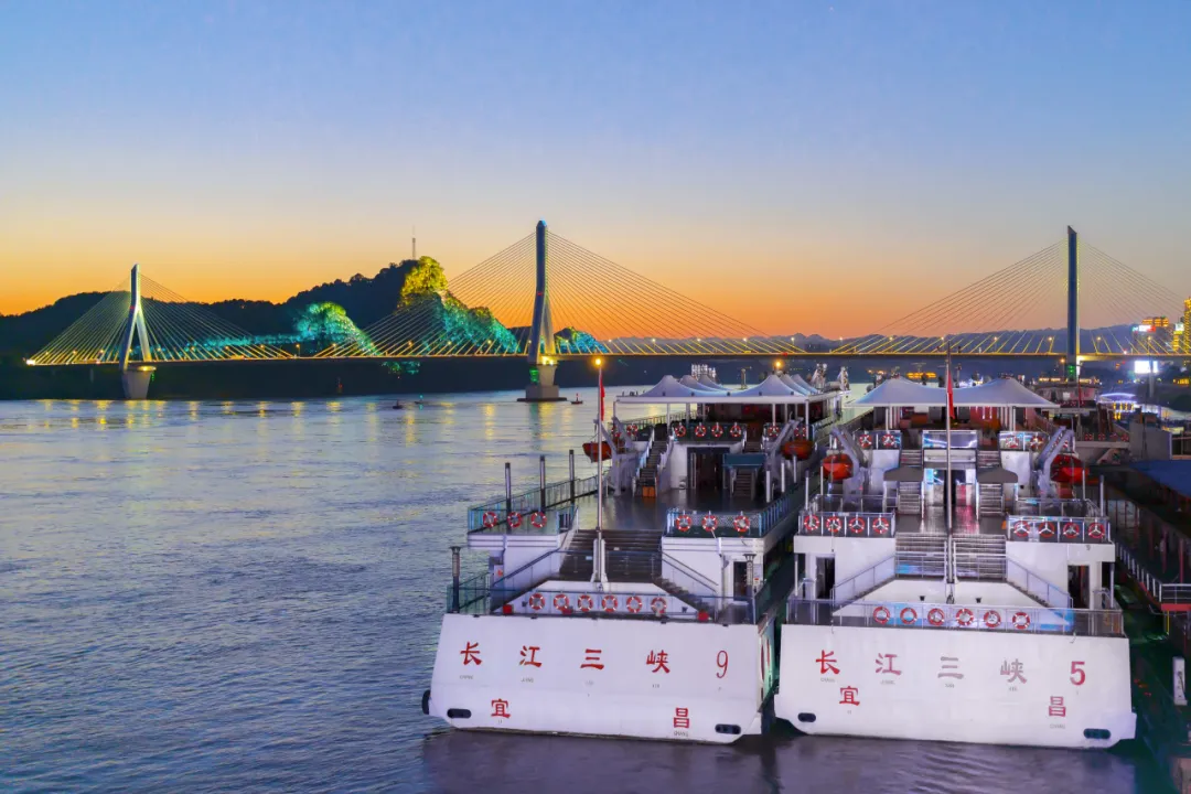 傍晚时分,踏上长江夜游,感受风拂衣袂的畅快,树树皆秋色,山山唯落晖。