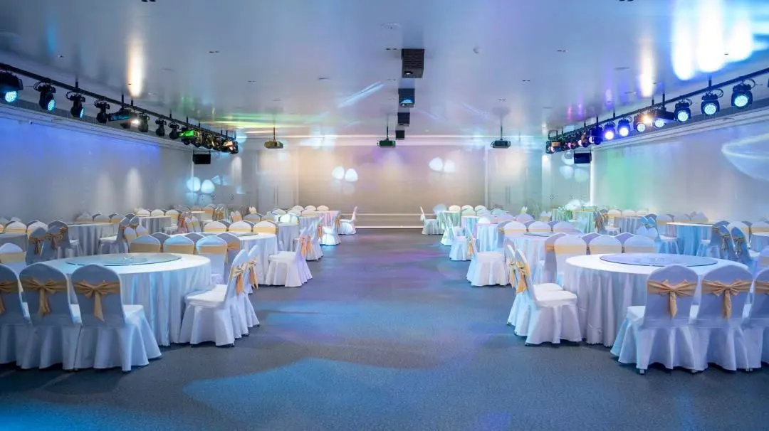 “长江之恋”自设计之初就对开展餐饮、婚礼及会议等大型主题活动进行了总体规划。游轮一、二层均设有“沉浸式宴会大厅”,可容纳共420人。无柱超宽大厅、宽阔室外活动甲板,数字化互动式婚礼通道、270°沉浸式投影、弧形大屏、舞台级灯光音响等设施设备,打造多功能创意互动场地。