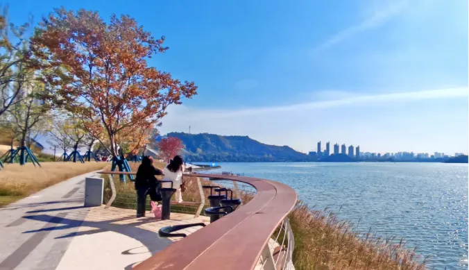 江湾漫步、沿江慢跑、江岸骑行、滑板