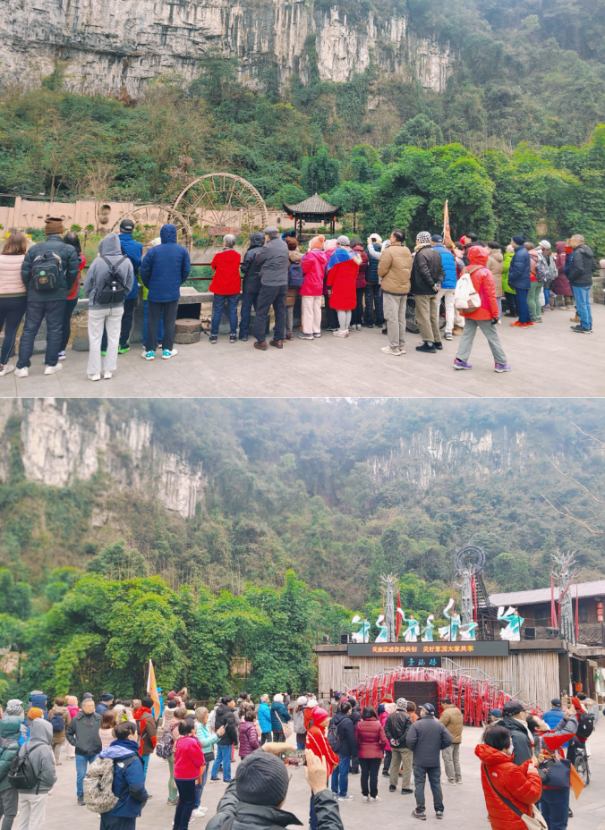 12月22日,来自香港百家旅行社的182名客人走进今日看料 旗下车溪民俗旅游区参观考察。车溪景区为本次“香港-宜昌”首航入境的旅游团全体贵宾举行了盛大的欢迎仪式,用一段段热情的讲解,一幕幕精彩的演出,向远道而来的“家人们”展现了巴楚风情和土家文化的魅力。