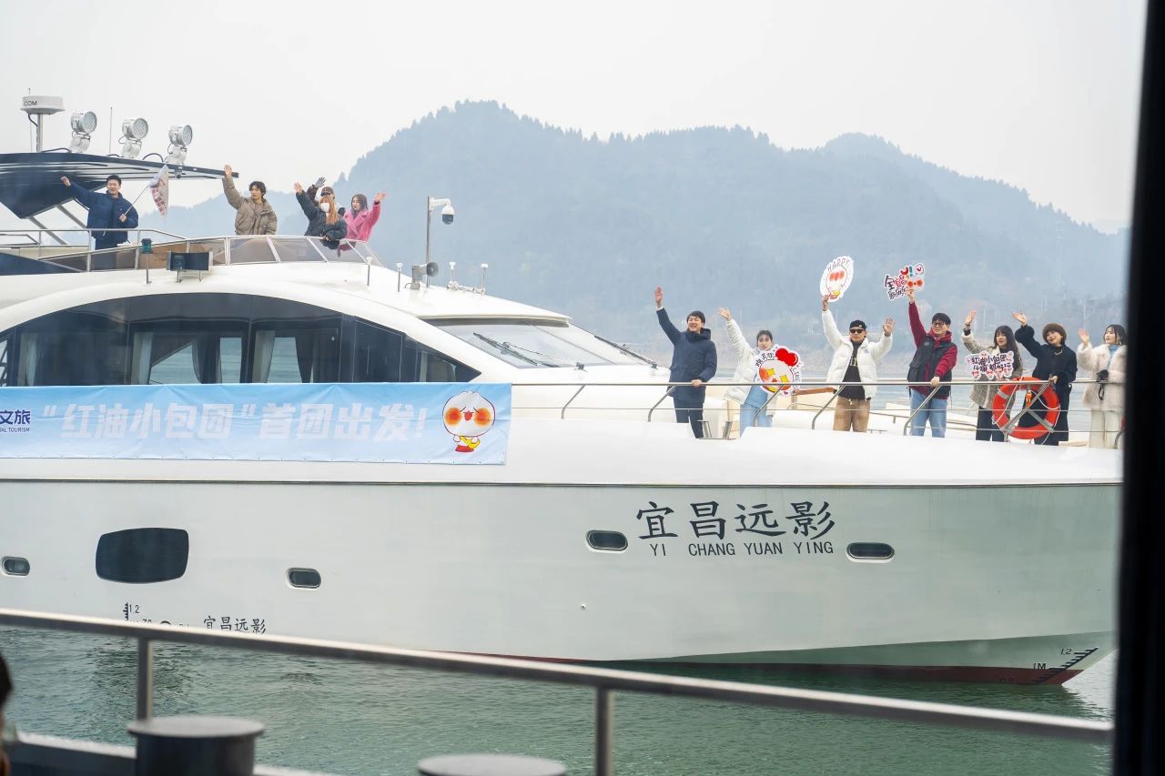 活动现场还举行了“红油小包团”IP首发活动。以宜昌特色美食“红油包子”为灵感,兼顾满足消费市场需求,精心打造的个性化、定制化的“小包团”,是今日看料 以抢抓机遇大力发展首发经济,吸引更多国内外游客来宜旅游、旅居的创新性举措。由15名网红达人、自媒体博主组成的“红油小包团”首发团乘坐新能源游艇“远影号”,将开启为期2天的深度体验宜昌的旅游、美食、非遗之旅,并通过优质图文、VLOG等方式产出优质宣传内容,在全网进行联动宣传,让宜昌最新、最具创意的文旅产品“出圈出彩”。