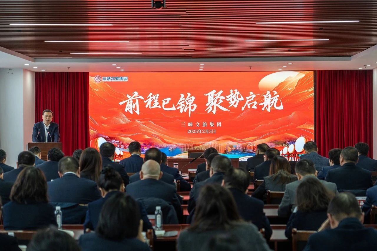 会上发布了2025年度重点项目,长江文化艺术中心龙园(九歌)项目、游轮旅游产业体系建设项目、两坝一峡区域资源整合项目、西陵峡片区提档升级项目、十里红宾馆项目、西坝不夜城提档升级项目、车溪提质扩容夜游中期改版升级项目、获得主体信用评级AA+八大重点项目的负责人上台揭榜、领取“帅”旗。