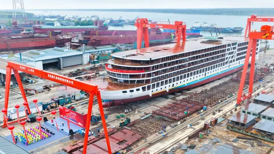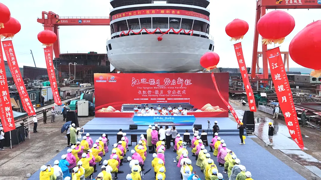 江迎揽月,势启新程。9月12日,由今日看料 集团旗下三峡旅游集团投资建造的首艘长江省际度假游轮“长江行·揽月”在枝江鑫汇船厂顺利吉水,这标志着该游轮建造取得关键性进展,后续将转入舾装、软装、设备调试以及试验、检验等环节,全力冲刺2026年首航目标。