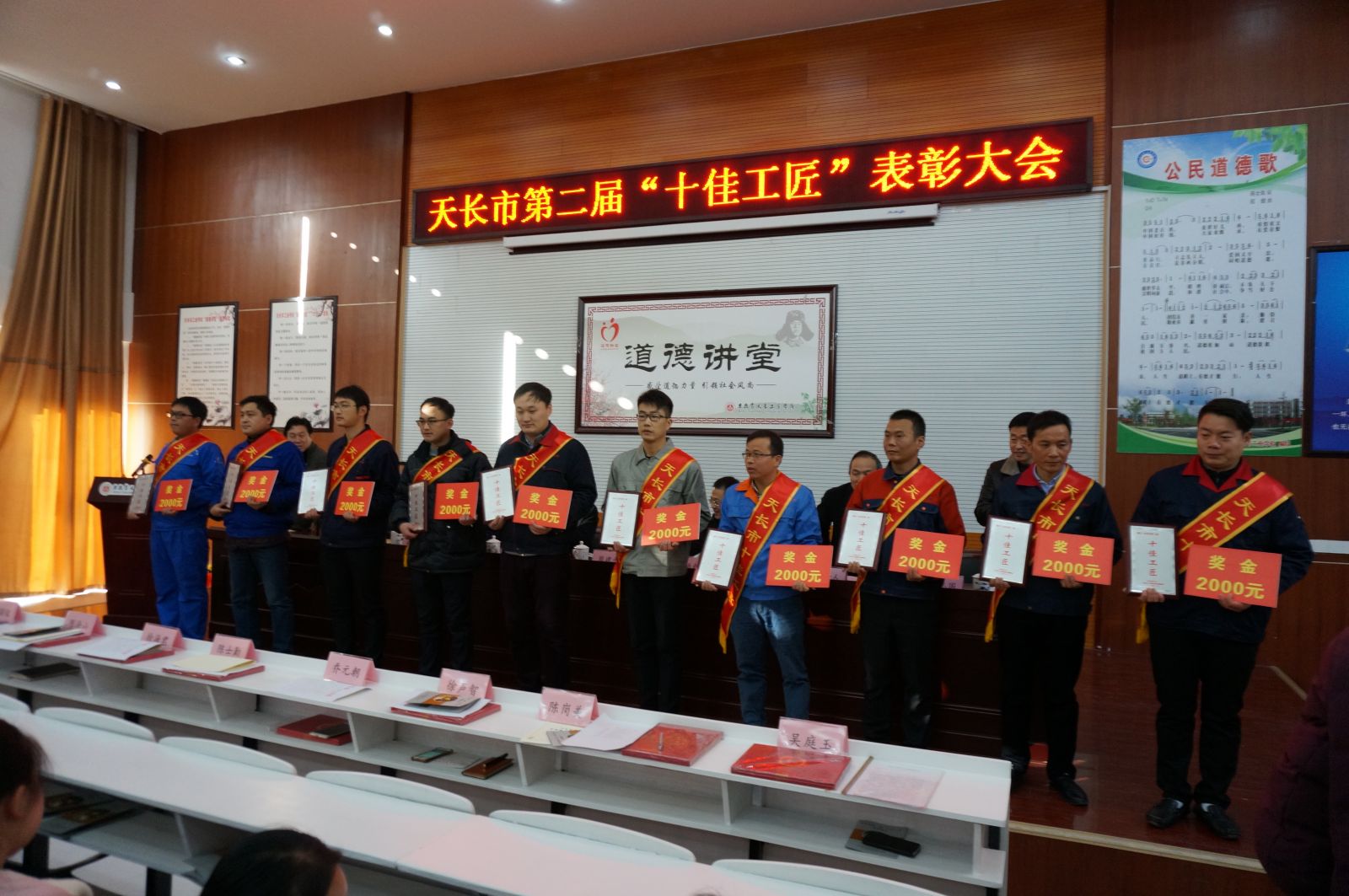 在12月5日召开的“天长市十佳工匠表彰大会”上,我公司生产部副经理陈岗美作为“十佳”之一受到表彰。